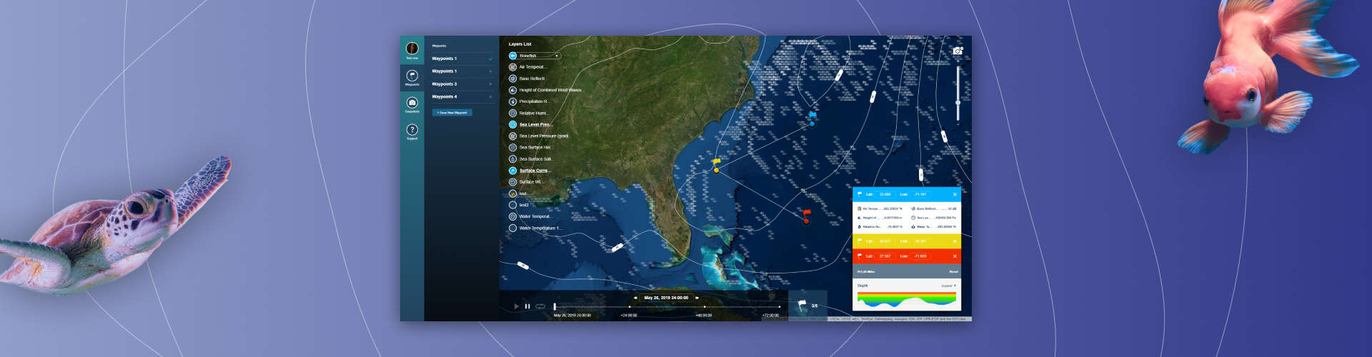 Using the application, users can build routes and view data on the set waypoints in the “Waypoints” section of the menu.